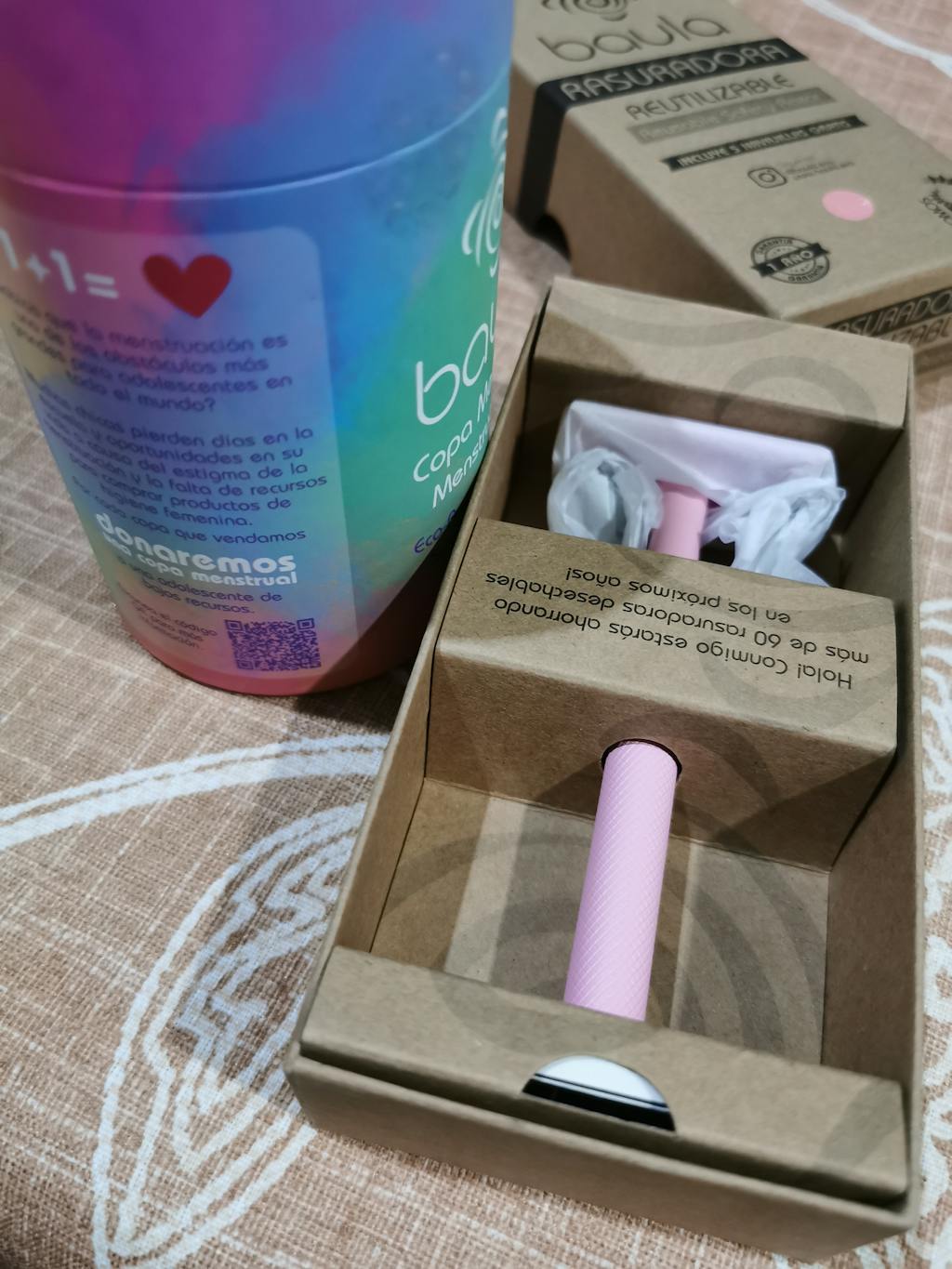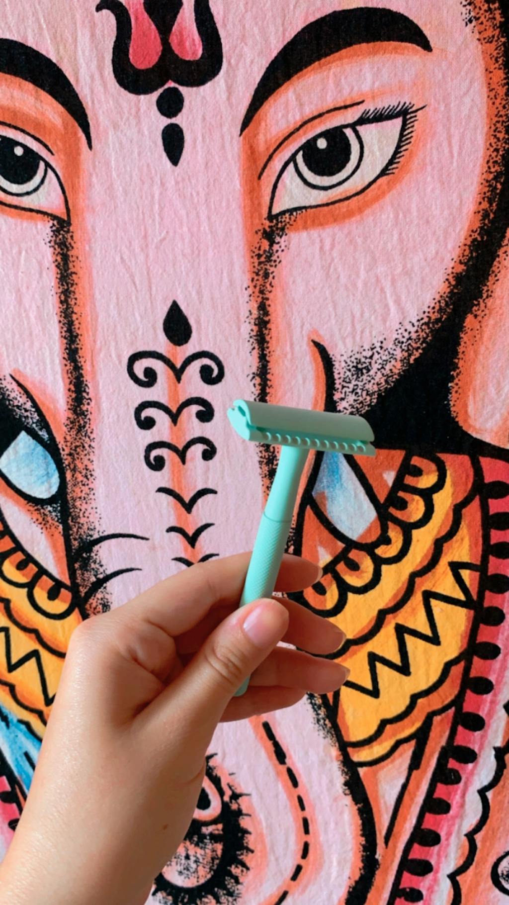 Este kit viene con nuestra rasuradora reutilizable + 5 navajillas gratis. Es ideal para piernas, axilas, barba y otras zonas donde también crece el amor (🐈🍆).